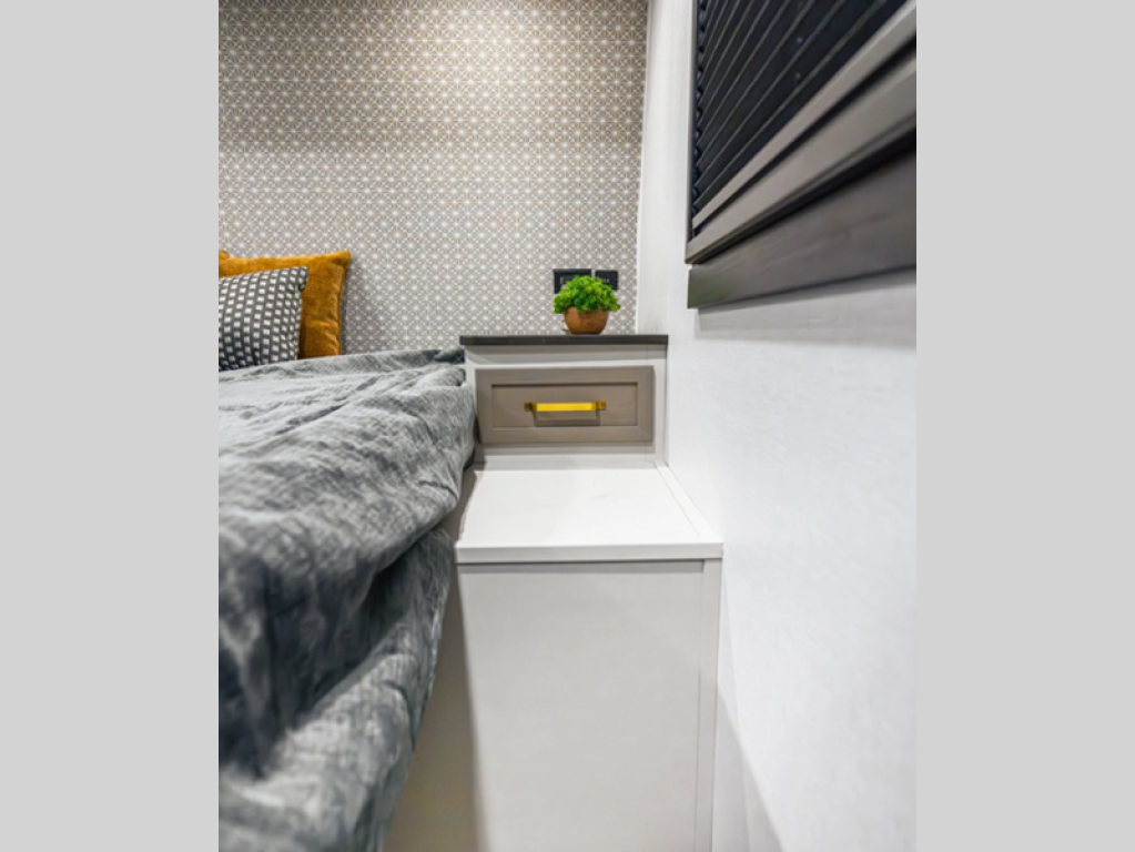 Each model is built with laminated "Aluma Frame" sidewalls and floor with block foam insulation for added durability. There is a power tongue jack with an LED docking light, along with an outside shower, and an extra large pass-thru storage for camp gear. You'll also enjoy the included Elevated Value Package that features conveniences such as square windows with built-in shades, 60K BTU On-Demand tankless water heater, and Maxxis radial tires.