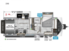 Sleeps 4 Slides 2 Length 30 ft 11 in Ext Width 8 ft 5 in Ext Height 12 ft 4 in Int Height 7 ft 7 in Hitch Weight 1150 lbs GVWR 13000 lbs Dry Weight 7900 lbs Fresh Water Capacity 90 gals Grey Water Capacity 78 gals Black Water Capacity 39 gals Tire Size ST235/80R16 LRE Furnace BTU 30000 btu Fuel Capacity 30 gals Available Beds Queen Refrigerator Type Stainless Steel Refrigerator Size 8 cu ft Cooktop Burners 3 Shower Size 27" x 36" Number of Awnings 1 Garage Size 13 ft 6 in LP Tank Capacity 20 lbs Water Heater Type Tankless AC BTU 28500 btu TV Info LR 40" TV Awning Info 19' w/LED Accent Lighting Axle Count 2 Number of LP Tanks 2 Shower Type Walk-In Shower Electrical Service 30 amp Similar Toy Hauler Travel Trailer Floorplans