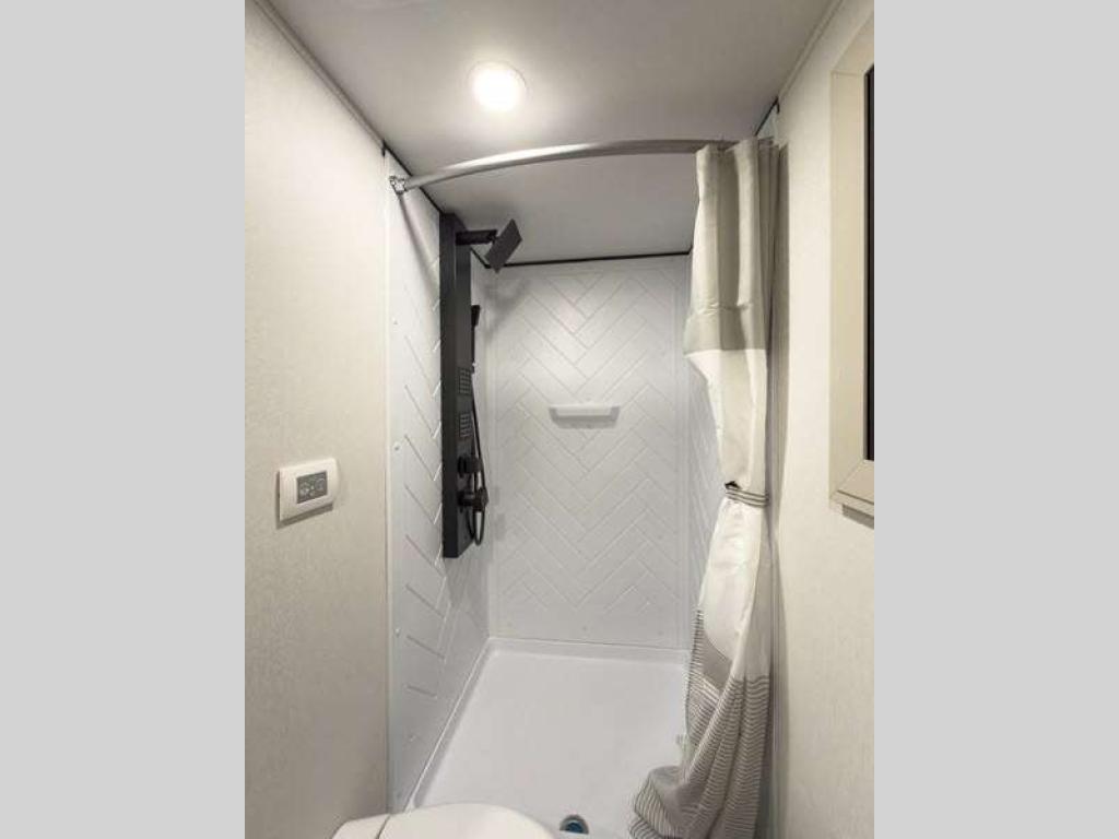 Sleeps 4 Slides 3 Length 34 ft 4 in Ext Width 8 ft 5 in Ext Height 13 ft 5 in Int Height 8 ft 1 in Exterior Color Standard Graphics or Aurora, Midnight, Pearl Full-Body Paint Options Hitch Weight 2350 lbs GVWR 19000 lbs Dry Weight 12500 lbs Fresh Water Capacity 83 gals Grey Water Capacity 106 gals Black Water Capacity 53 gals Tire Size ST215/75R 17.5 LRH Furnace BTU 35000 btu Available Beds Queen Refrigerator Type Stainless Steel Refrigerator Size 20 cu ft Cooktop Burners 3 Shower Size 48" x 30" Number of Awnings 2 Axle Weight 8000 lbs LP Tank Capacity 30 lbs. Water Heater Type Tankless On Demand AC BTU 30000 btu TV Info LR LED Smart TV Awning Info 10' 4" and 16' Power w/Integrated LED Lighting Axle Count 2 Washer/Dryer Available Yes Number of LP Tanks 2 Shower Type Shower w/Seat Electrical Service 50 amp Similar Floorplans