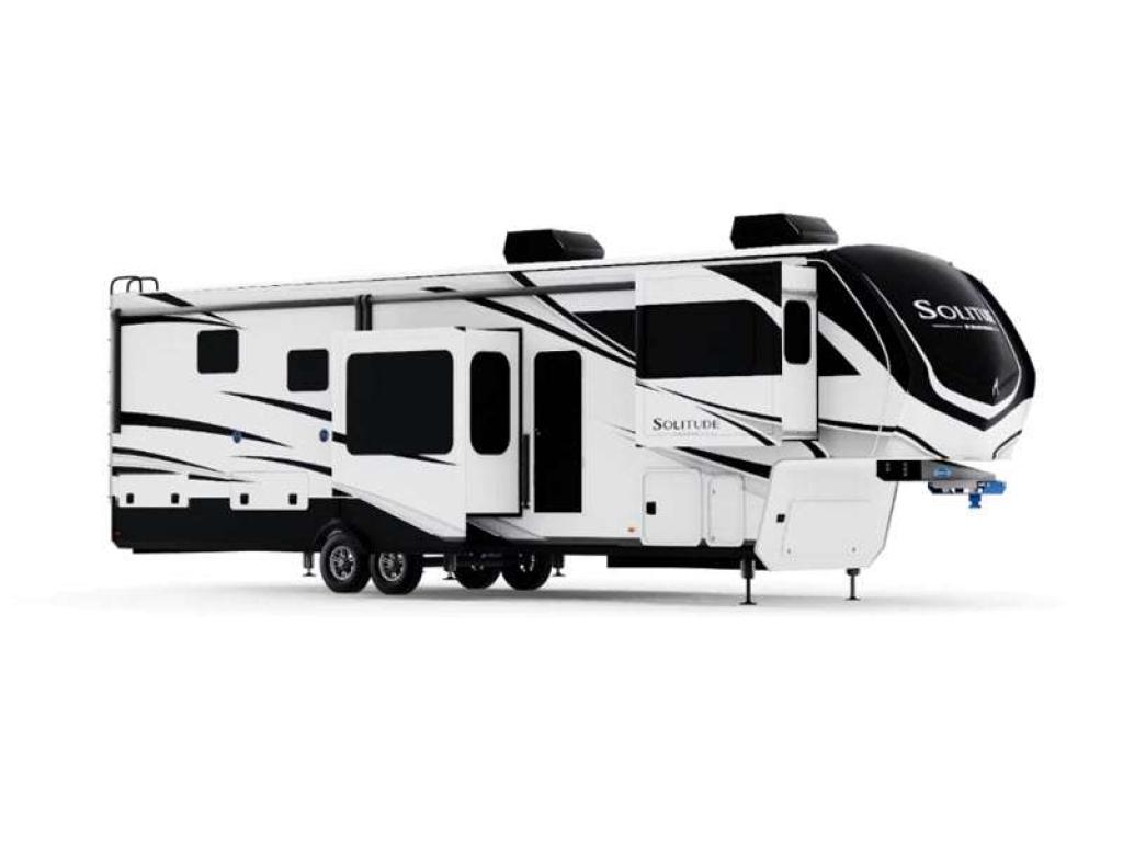 Choose a Solitude fifth wheel by Grand Design today, and experience full-time camping or extended-stay vacations with residential features, taller ceilings, deeper cabinets, and larger scenic windows!