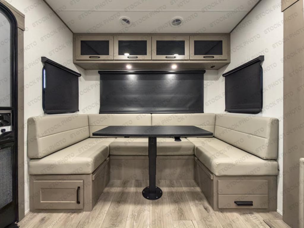 With any Reflection 150 Series fifth wheel by Grand Design, there is more available payload capacity and a broader range of half-ton trucks capable of towing this fifth wheel, and no slider hitch is needed thanks to the 90-degree turning radius which makes them short bed friendly and easier to tow. The mandatory Ultimate Power package provides a "One-Touch" automatic leveling system and a detachable power cord with LED light for easy setup, plus motion sensor pass-through lighting and entry lighting, and the Tire Linc TPMS will help you stay safe on the road. The interior offers residential cabinetry and premium Congoleum flooring, to the booth dinette and residential-style window treatment. Make your refined decision today!